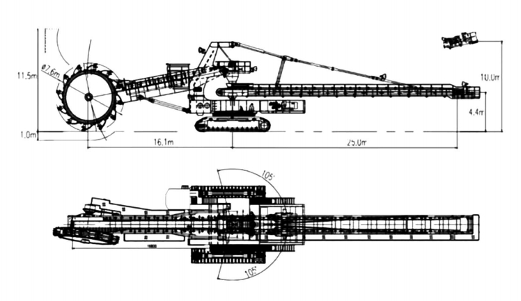 (1)輪斗挖掘機的連續生產率高,開采量大服務年限長可獲得良好的經濟效益。